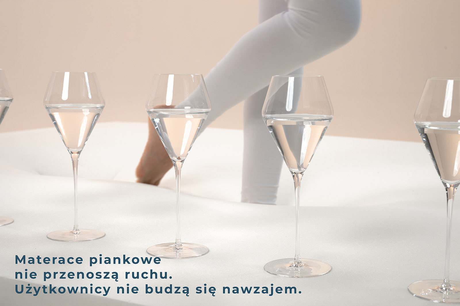 - materace piankowe w przeciwieństwie do sprężynowych (kieszeniowych, bonellowych) nie przenoszą ruchu jednego użytkownika na drugiego - w czasie snu nie budzimy partnera.