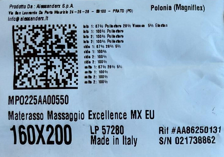 Skład pokrowców poszczególnych materacy jest zawsze wymieniony na etykiecie z kodem QR z boku każdego pokrowca materaca.